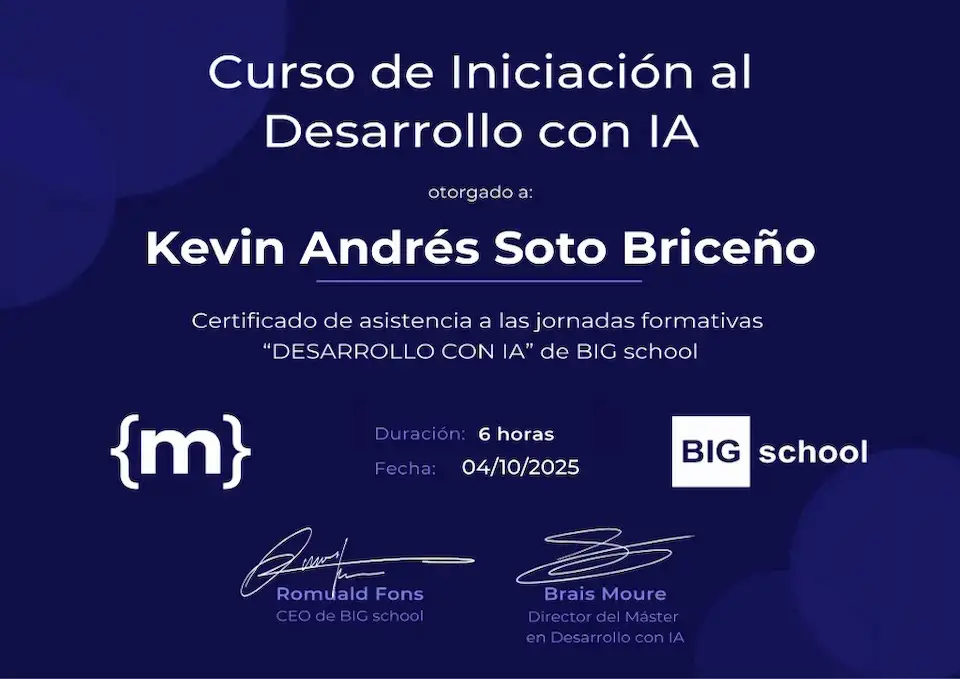 Soy Kevin Andrés Soto Briceño, estudiante de desarrollo web y apasionado por la tecnología. Mi camino